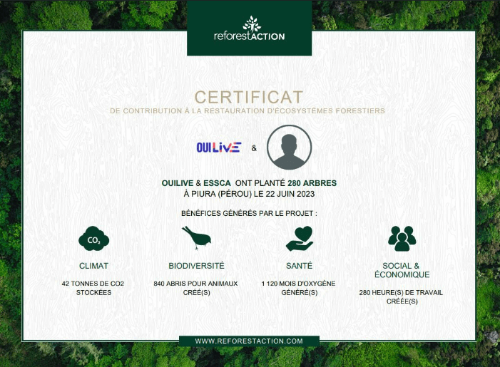 C’est une fierté pour l’ESSCA de contribuer à la préservation de notre environnement et à la reforestation.