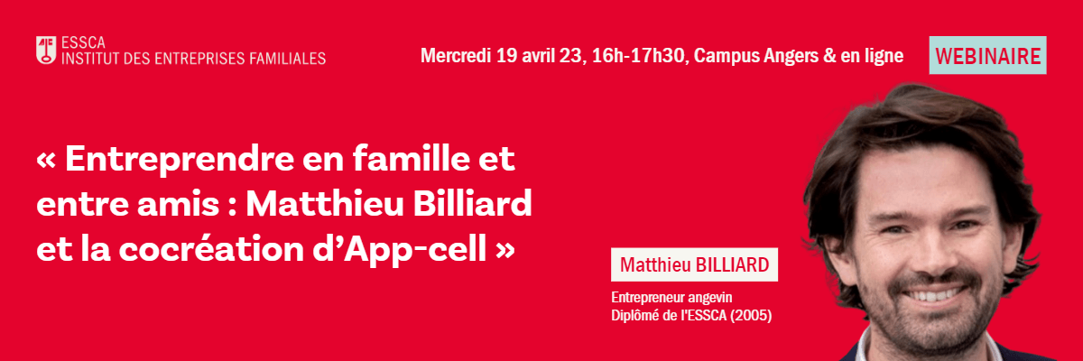 L’Institut des Entreprises Familiales aura le plaisir d’accueillir Matthieu Billiard, diplômé de ESSCA, multi-entrepreneur et également Président de la Chambre de Commerce et d’Industrie de Maine et Loire.